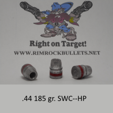 In-Stock .44 185 gr. SWC-HP FB (sized .430) OAL 0.593, Meplat 0.310, Nose to crimp groove 0.311, with a Hollow Point you can drive a truck into!