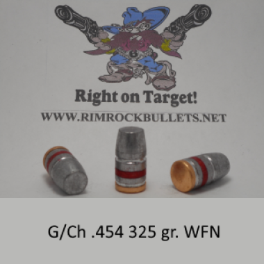In-Stock g/ch .454 Casull/.460 S&W 325 gr. LBT-WFN (sized .451) because some pistols have small throats in the clyinders. OAL 0.888, Meplat 0.341, Nose to crimp groove 0.373