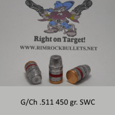 In-Stock g/ch .511 450 gr. SWC (sized .511-.512) OAL 0.943, Meplat 0.358, Nose to crimp groove 0.426