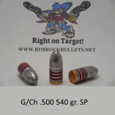 g/ch .500 S&W 540 gr. Spire Point (BHN 22) this is a custom mold I had made up for people wanting a heavy S.P. for the single shot rifles.
