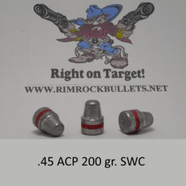 .45 ACP 200 gr. SWC Bevel base. (BHN 15) A nice light bullet for the .45 ACP and .45 Auto-Rim. 3 boxes will fit in a USPS flat rate box.